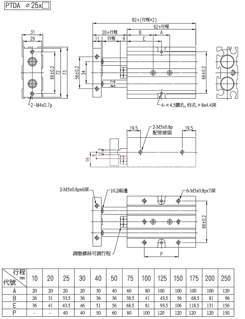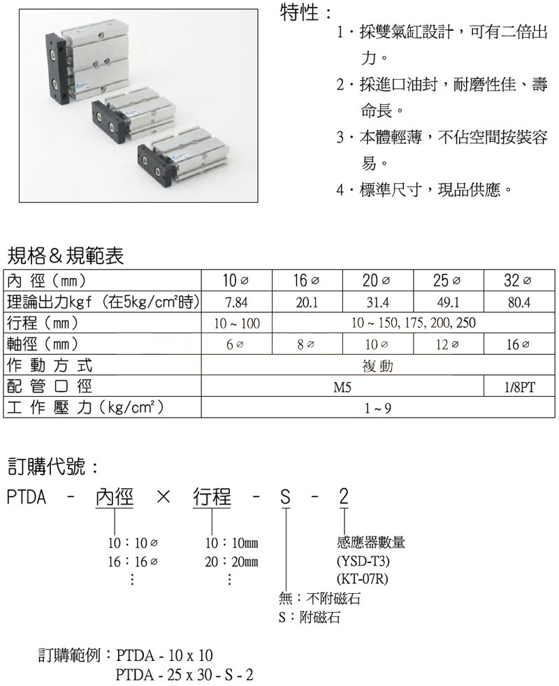 PTDA-32*150-S-2,PTDA-32*175-S-2,PTDA-32*200-S-2,PTDA-32*250-S-2,