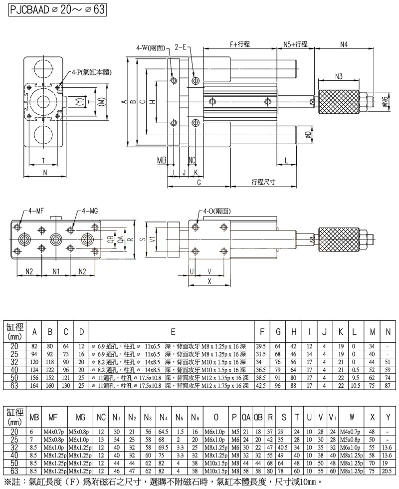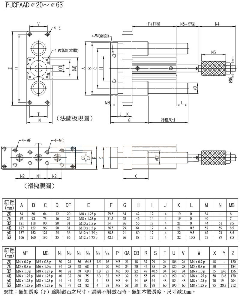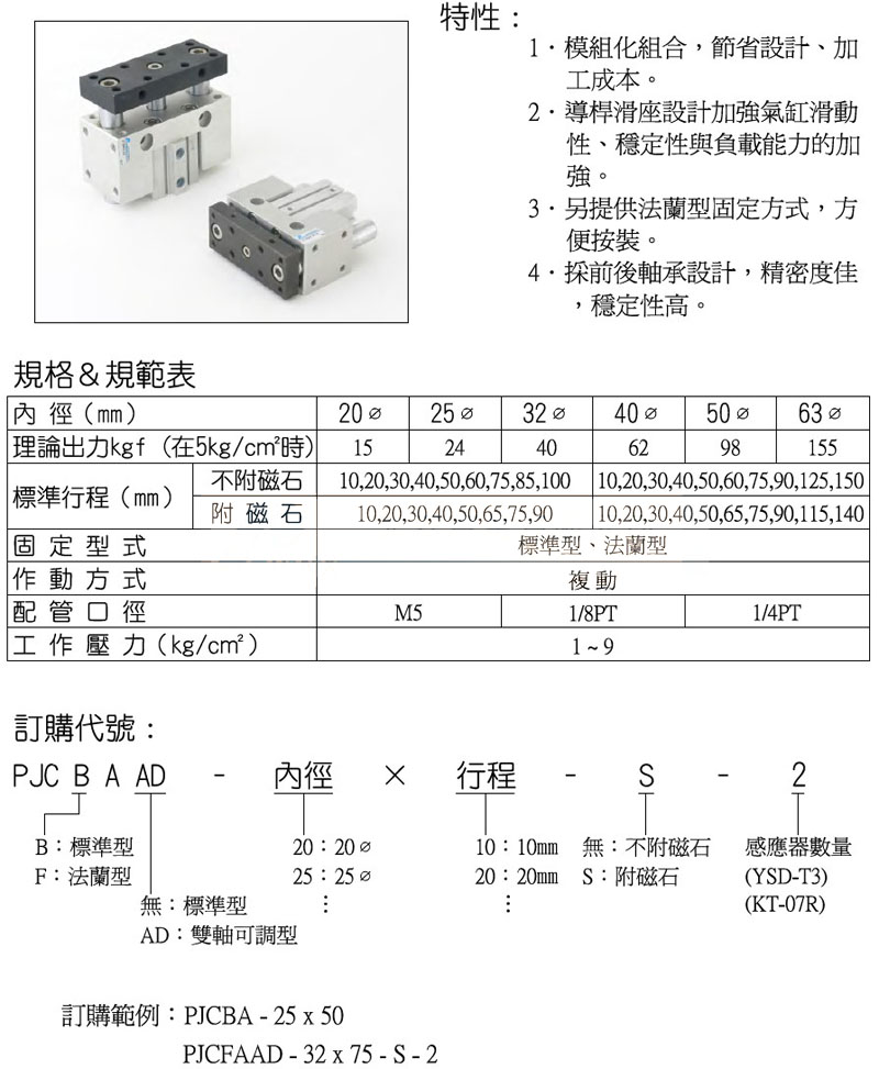 PJCBA-20,PJCFA-32,PJCBA-40,PJCFAAD-20,PJCBAAD-32,panix滑臺治具氣缸