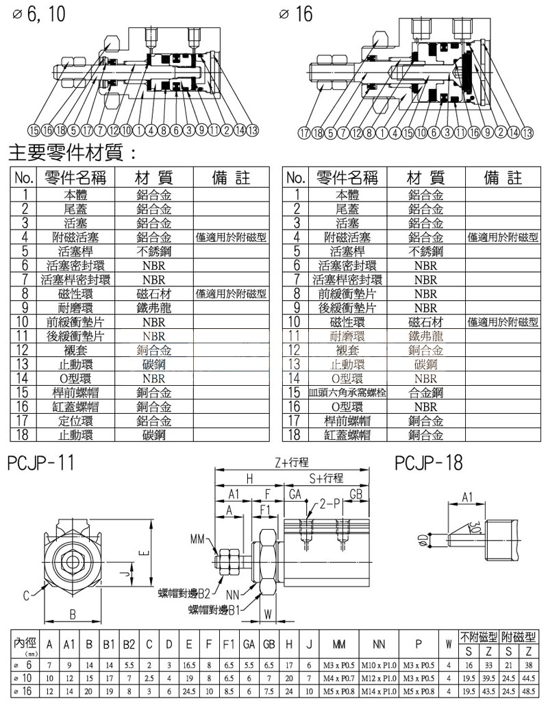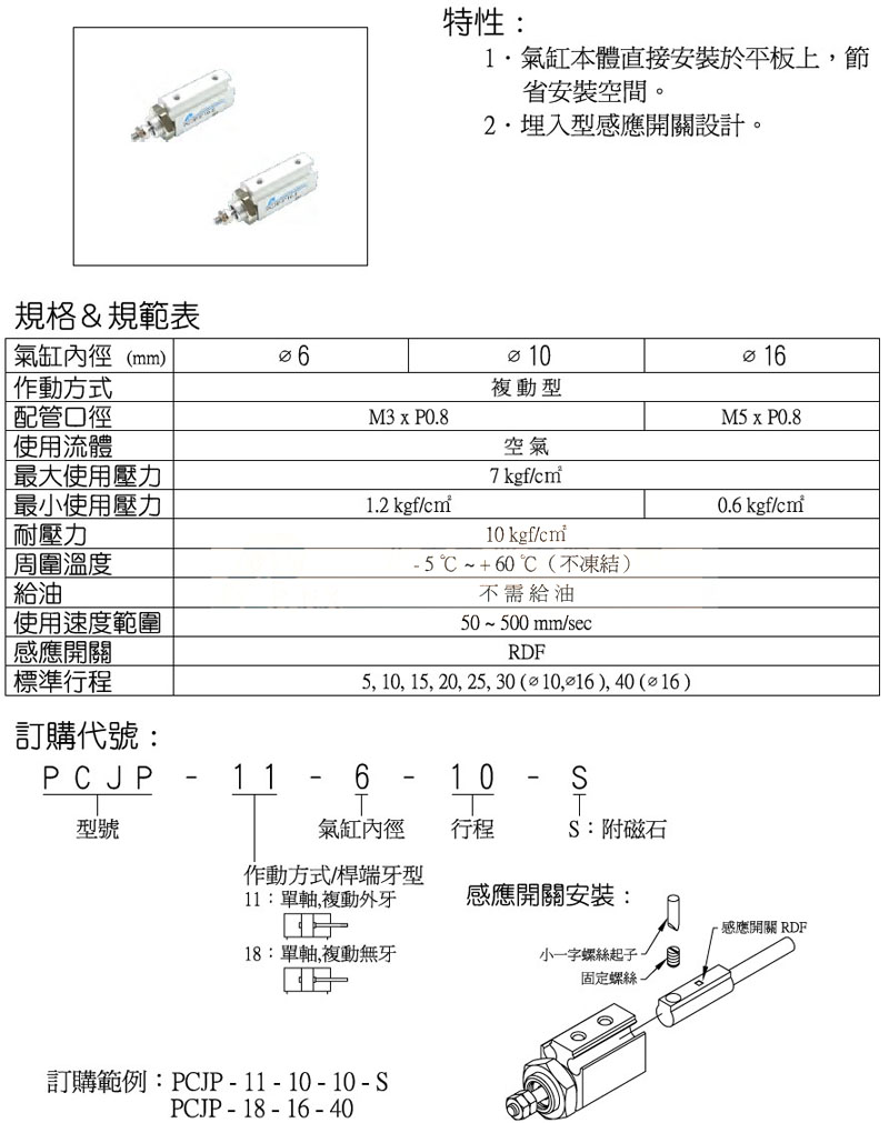PCJP-11-6,PCJP-11-10,PCJP-11-16,PCJP-18-6,PCJP-18-10,panix復(fù)動螺牙氣缸 |