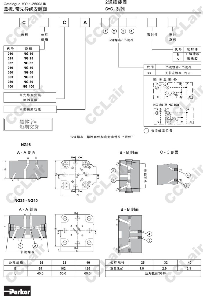 詳細(xì)信息 C016CA99N,C025CA99N,C032CA99N,C040CA99N,C050CA99N,C063CA99N,C080CA99N,C100CA99N,Parker2通插裝閥蓋板