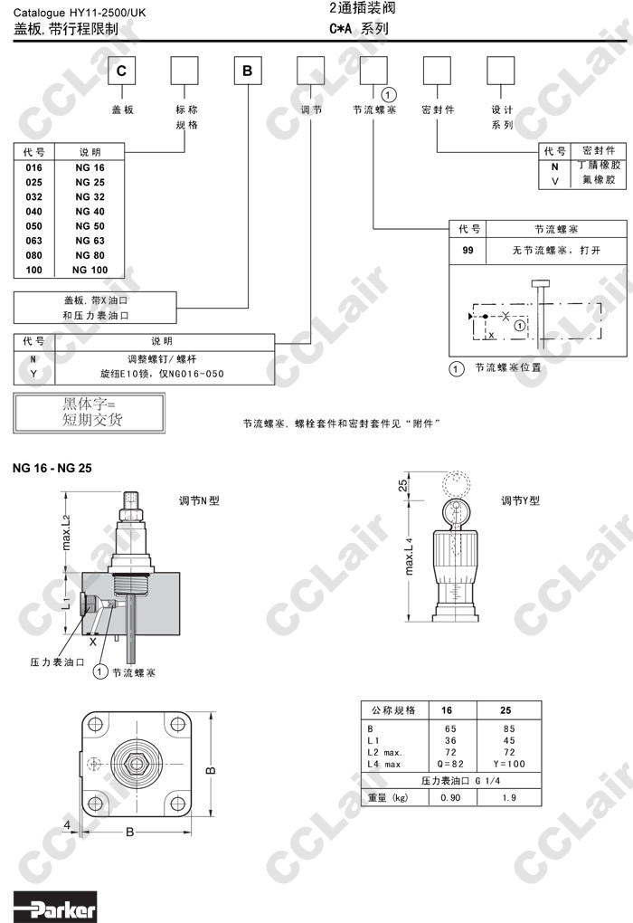 C016B,C025B,C032B,C040B,C050B,C063B,C080B,C100B,C016BN99N,C016BY99N,Parker2通插裝閥蓋板