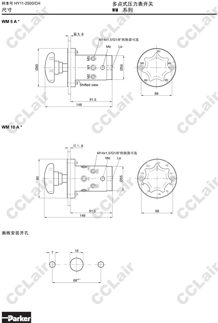 詳細(xì)信息 VM5A,VM10A,Parker多點(diǎn)式壓力表開關(guān)