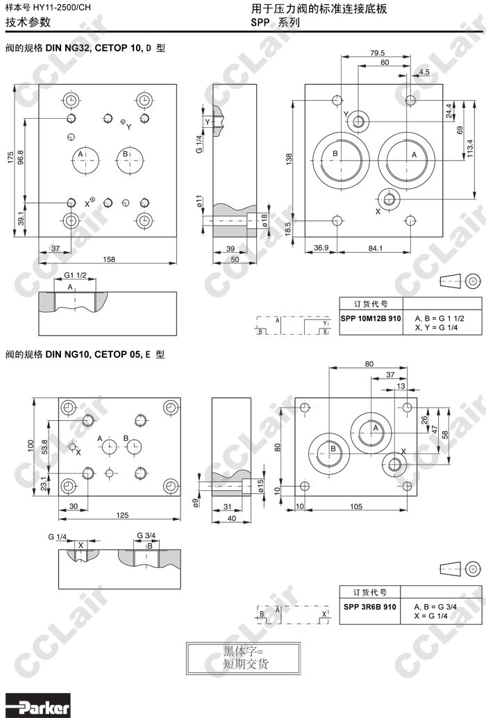 詳細信息 SPP10M12B910,SPP3R6B910,Parker標準連接底板