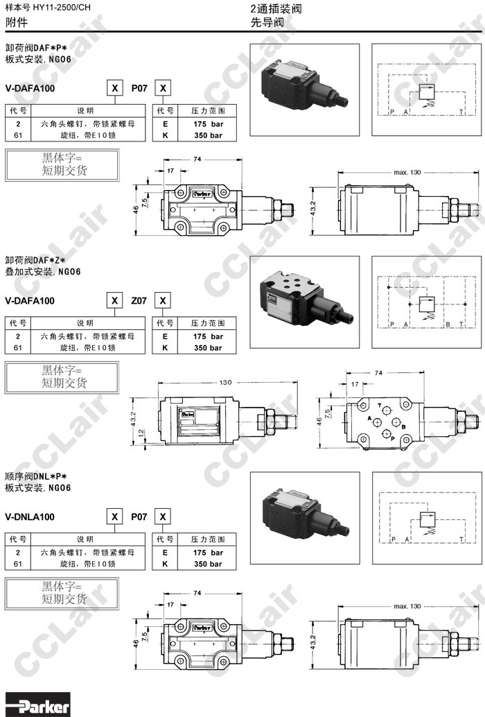V-DAFA1002Z07E,V-DAFA1002Z07K,V-DAFA10061Z07E,V-DAFA10061Z07K,Parker2通插裝卸荷閥