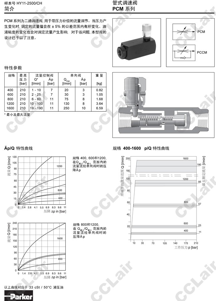 PCM400,PCM600,PCM800,PCM1200,PCM1600,PCCM400,PCCM600,PCCM800,PCCM1200,PCCM1600,Parker管式調(diào)速閥
