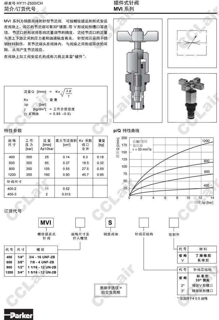 MVI400S,MVI400S2,MVI400S3,MVI600S,MVI800S,MVI1200S,Parker插件式針閥
