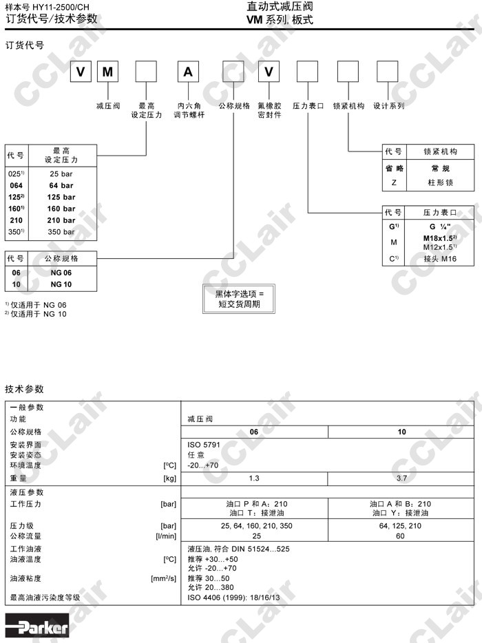 詳細信息 VM025A06VG,VM160A06VG,VM350A06VG,VM125A10VC,VM064A06VG,VM210A06VG,VM064A10VM,Parker直動式減壓閥