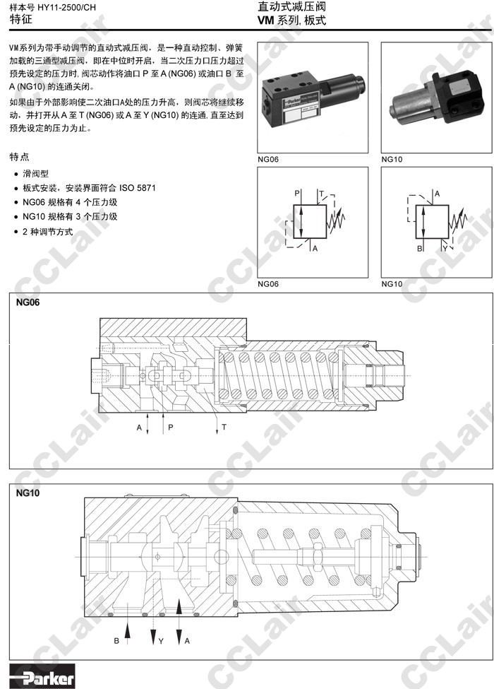 VM025A06VG,VM160A06VG,VM350A06VG,VM125A10VC,VM064A06VG,VM210A06VG,VM064A10VM,Parker直動式減壓閥