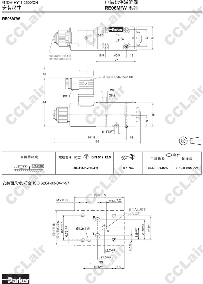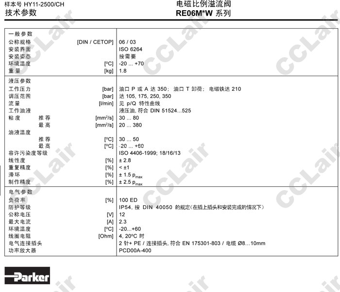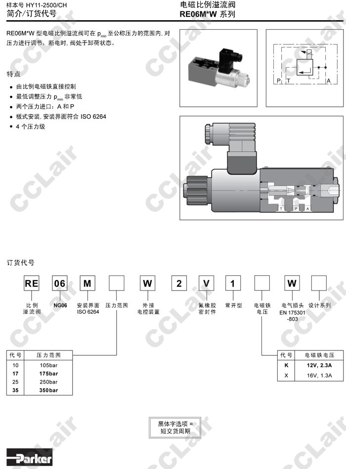 RE06M10W2V1KW,RE06M17W2V1KW,RE06M25W2V1KW,RE06M35W2V1KW,RE06M10W2V1XW,Parker電磁比例溢流閥