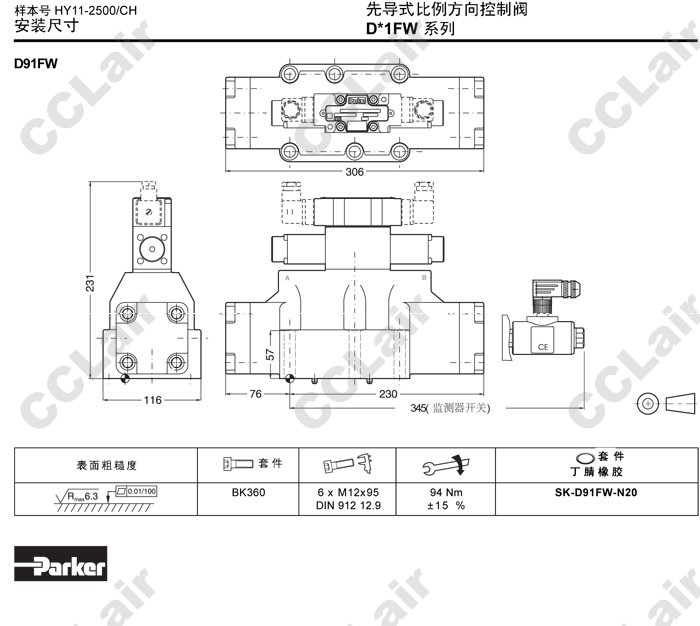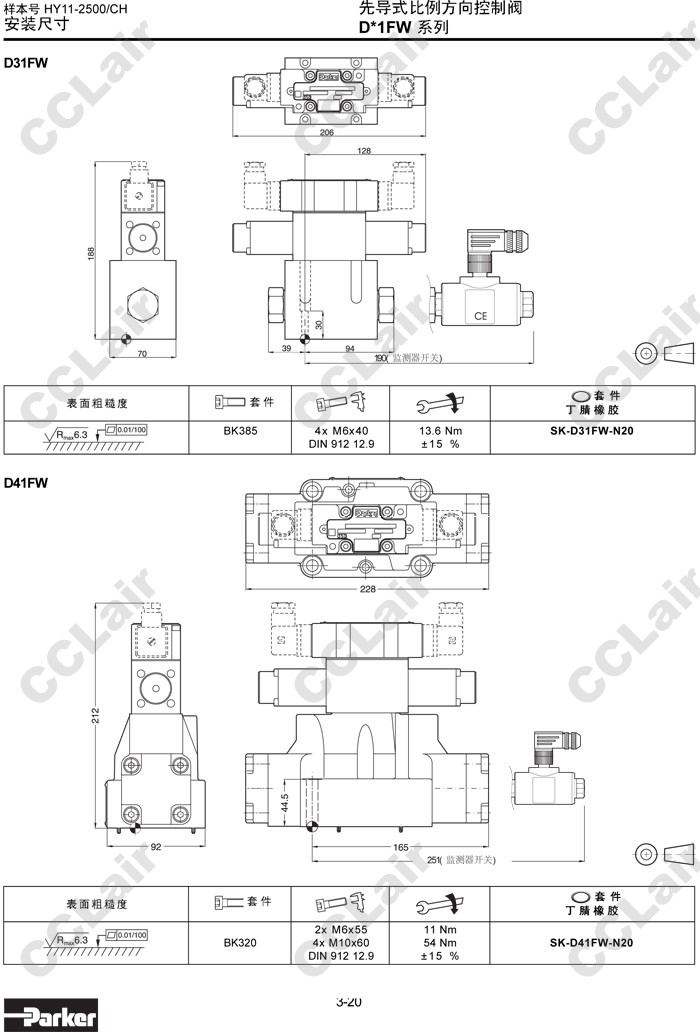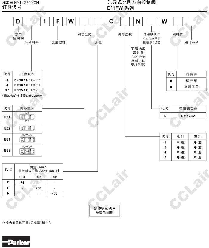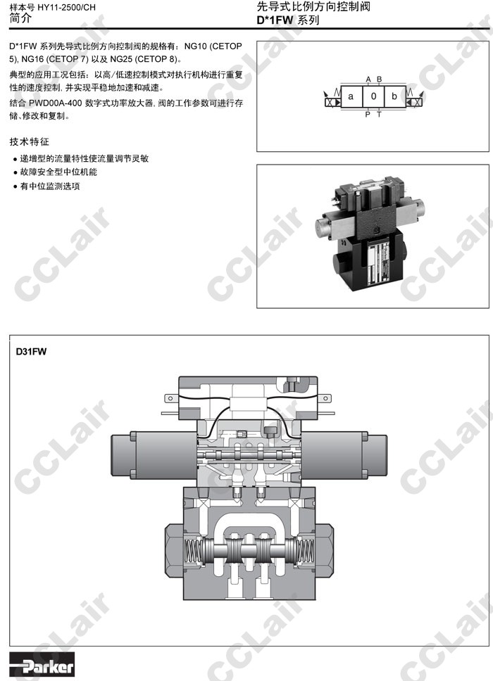 D31FWE,D41FWE,D91FWE,D31FWE01CC1NLW0,D41FWE01FC1NLW0,D91FWE01FH1NLW0,Parker先導(dǎo)式比例方向控制閥
