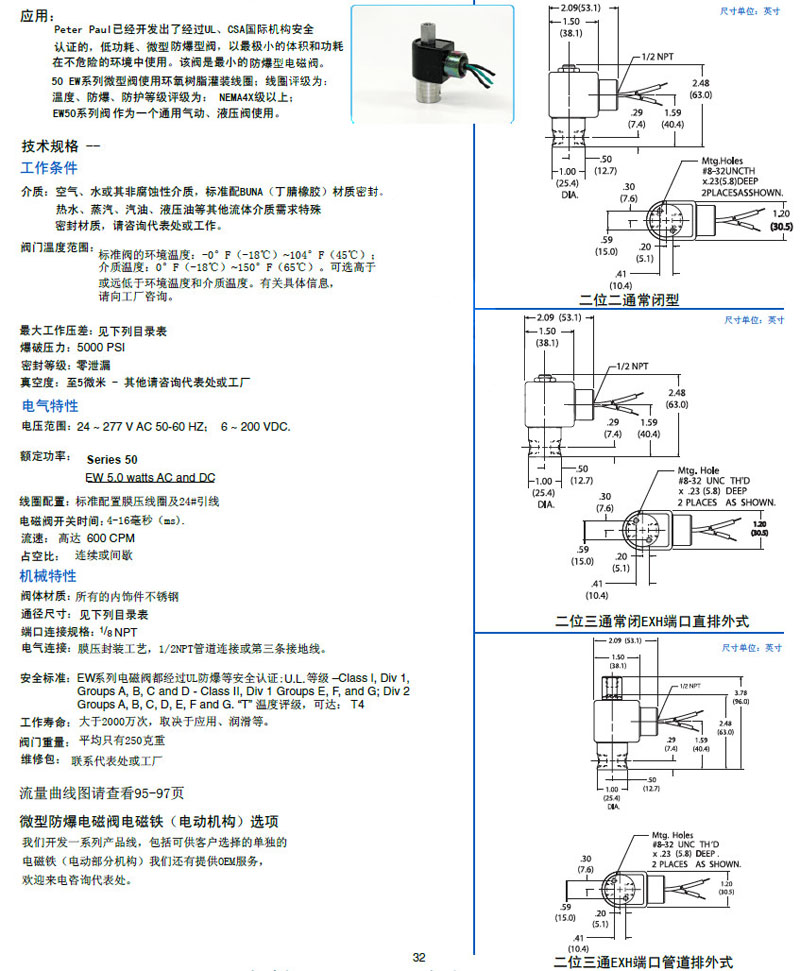 EW51G8XCCP,EW52N8DCCP,EW53JJ8DCCP,EW54KK8XCCP,EW56GG8XCCP,peterpaul微型防爆型電磁閥 |