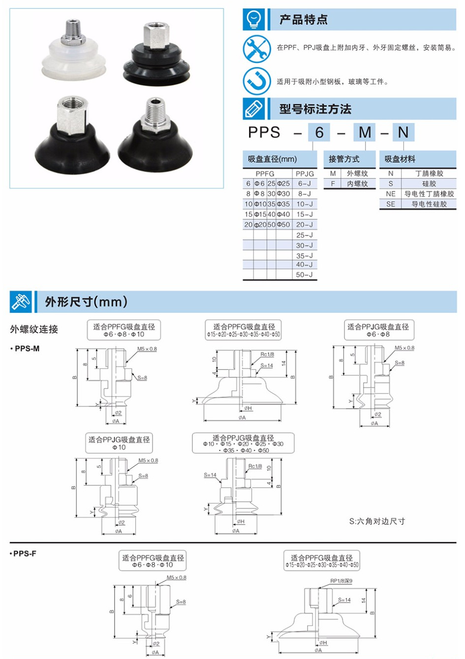 PPS-6-M,PPS-8-M,PPS-10-M,PPS-15-M,PPS-20-M,PPS-25-M,PPS系列吸盤附接頭
