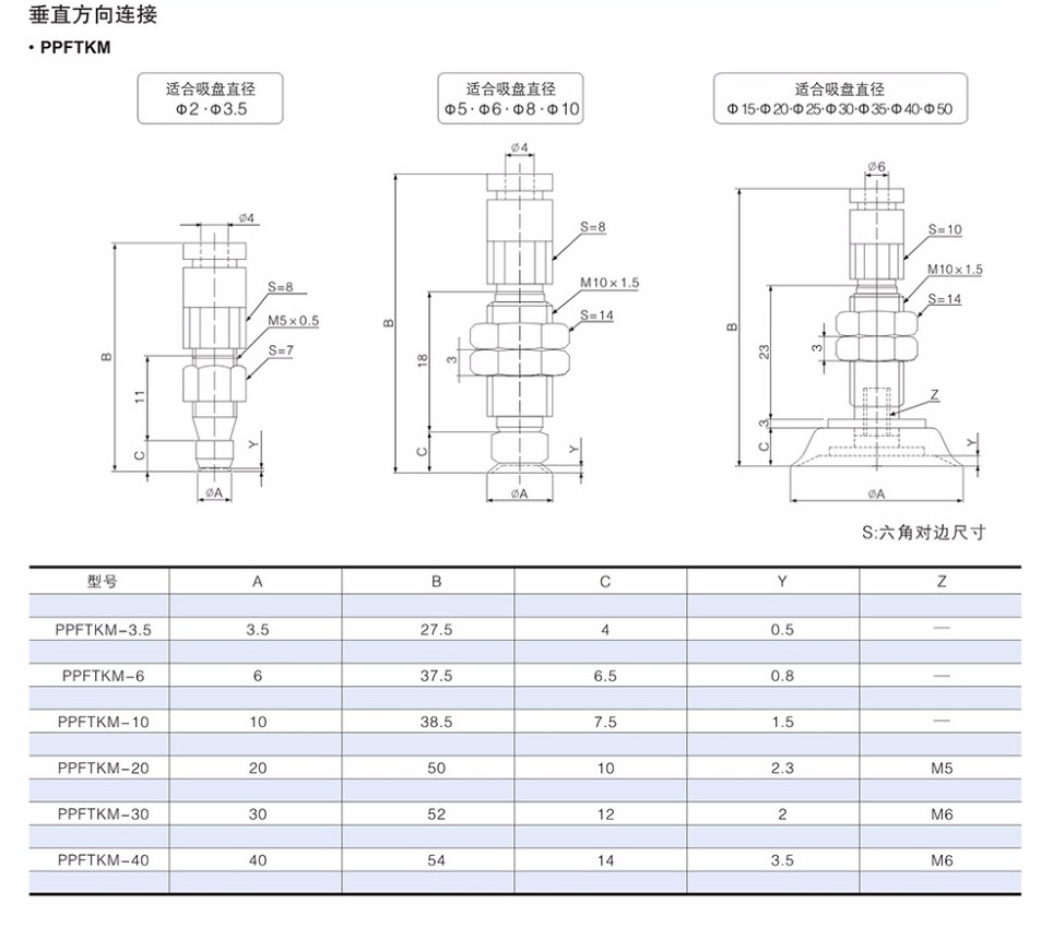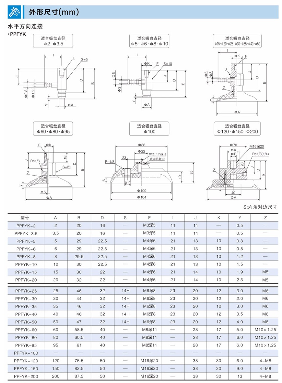 PPFTK-2,PPFTK-3.5,PPFTK-5,PPFTK-6,PPFTK-8,PPFTK-10,標(biāo)準(zhǔn)垂直/水平真空口無緩沖吸盤組