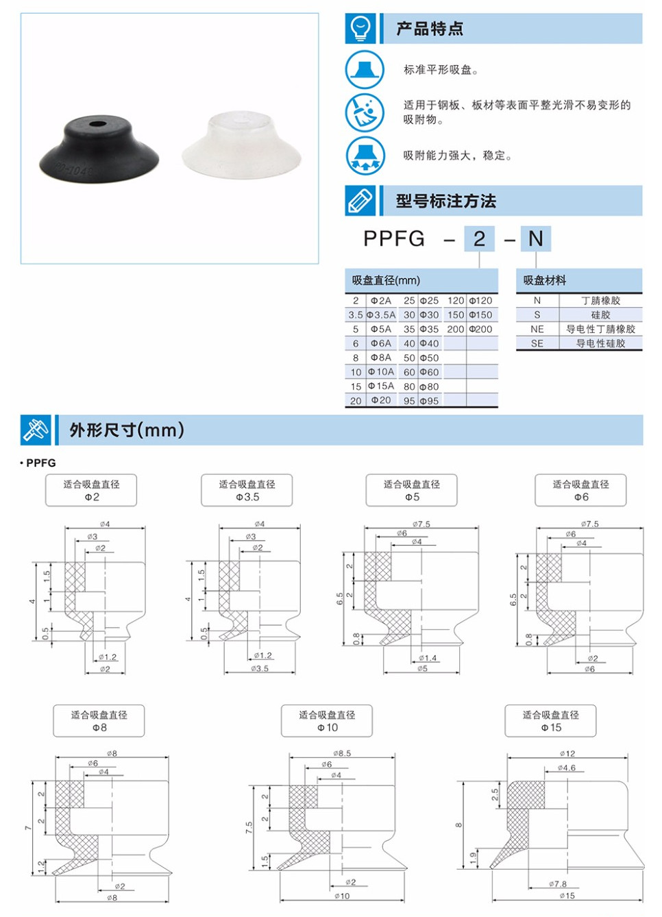 PPFG-2-N,PPFG-2-S,PPFG-2-NE,PPFG-2-SE,PPFG-3.5-N,PPFG系列標(biāo)準(zhǔn)型吸盤