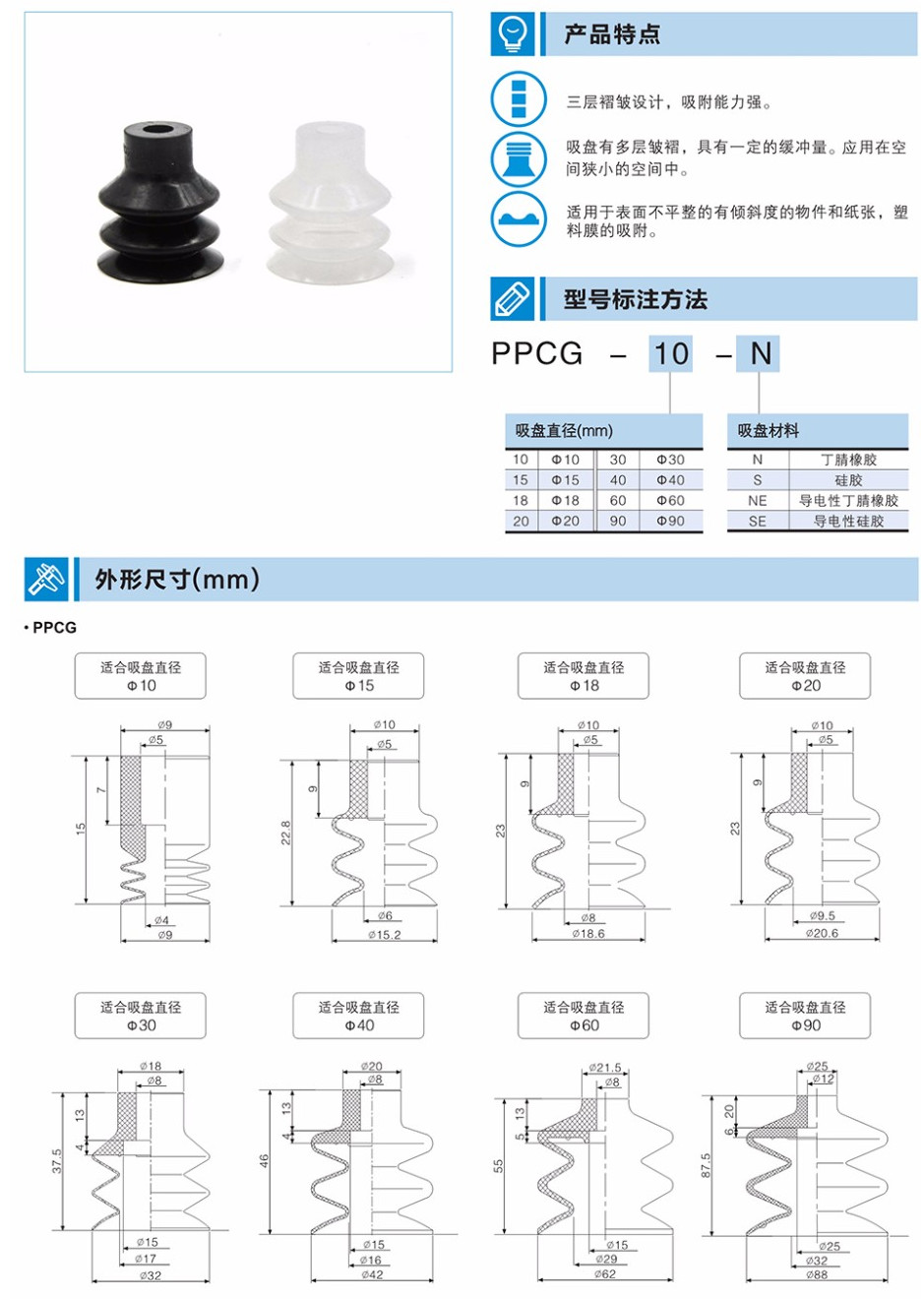 PPCG-10-N,PPCG-10-S,PPCG-10-NE,PPCG-10-SE,PPCG-15-N,PPCG-15-S,PPCG系列三層吸盤