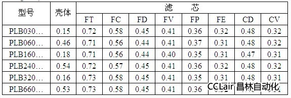 4、額定流量下的清潔濾芯壓降(單位:1×105Pa 介質參數(shù):30mm2/s 0.86kg/dm3)