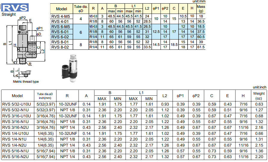 RVS4-01,RVS6-01,RVS6-02,RVS8-02,RVS5/32-U10U,RVS3/16-U10U,RVS3/16-N1U,RVS1/4-U10U,RVS1/4-N2U,RVS5/16-N2U,