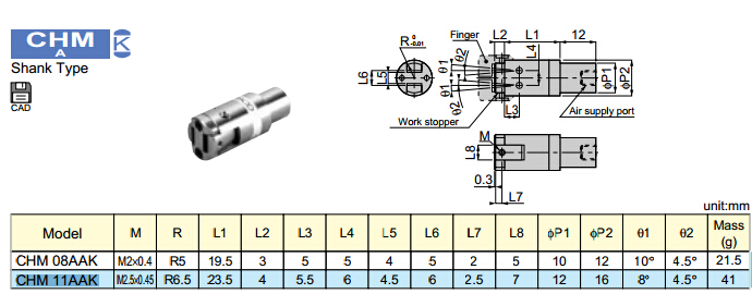 CHM08AAK,CHM11AAK,PISCO截止夾持器