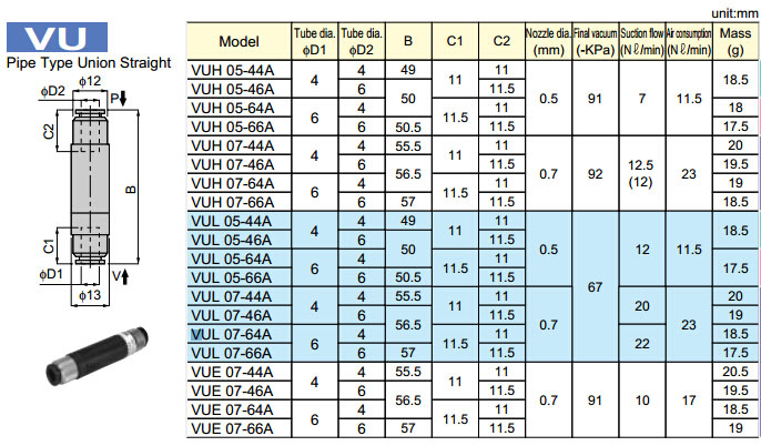 VUH05-44A,VUH07-44A,VUL05-44A,VUL07-44A,VUE07-44A,VUH05-46A,VUH07-46A,VUE07-46A,PISCO真空發(fā)生器
