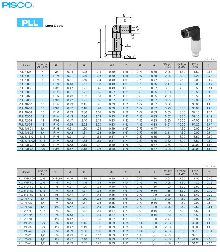 PLL5/32-U10U,PLL1/4-N1U,PLL5/16-N1U,PLL3/8-N2U,PLL1/2-N2U,PLL5/32-N1U,PISCO快速接頭