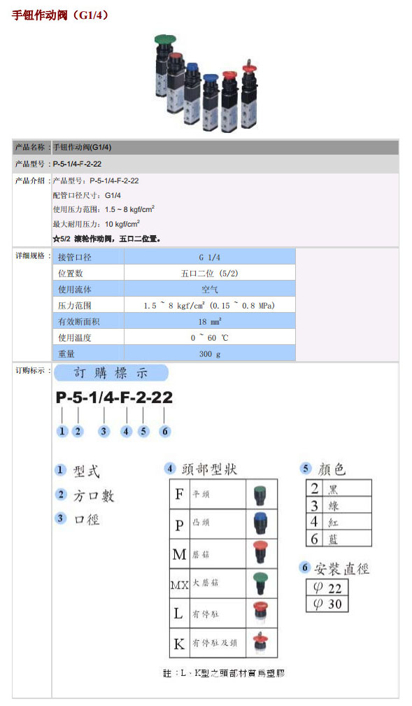 P-5-1/4-F-2-22,POSU手鈕作動(dòng)閥