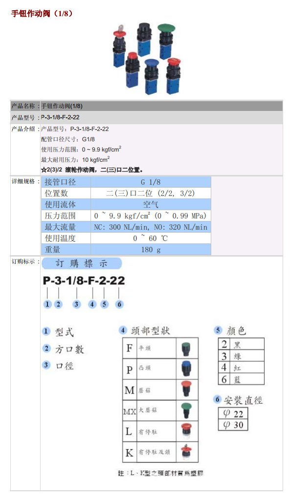 P-3-1/8-F-2-22,POSU手鈕作動閥