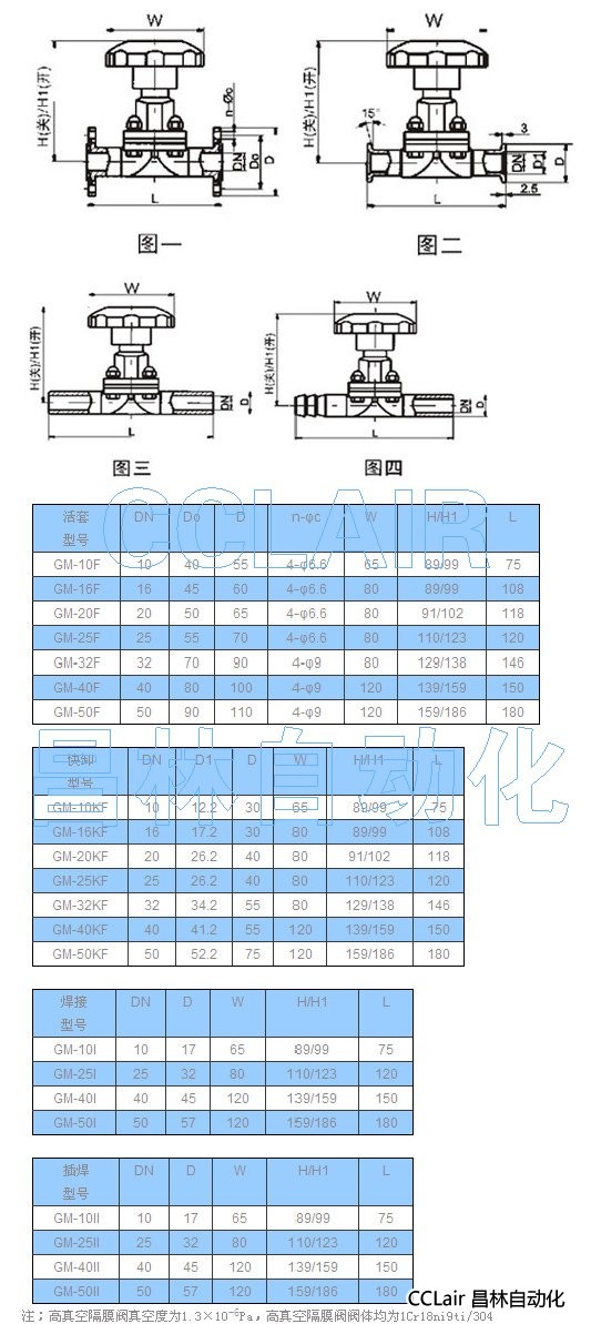 GM型系列高真空隔膜閥是利用閥桿將橡膠膜直接壓在閥座上,用來(lái)截止或接通真空系統(tǒng)。采用連接形式有活套法蘭連接、快卸法蘭連接、焊接式連接。焊接式連接又分焊接式I型連接(即兩端焊接),焊接式II型連接(即一端焊接,另一端插入)。