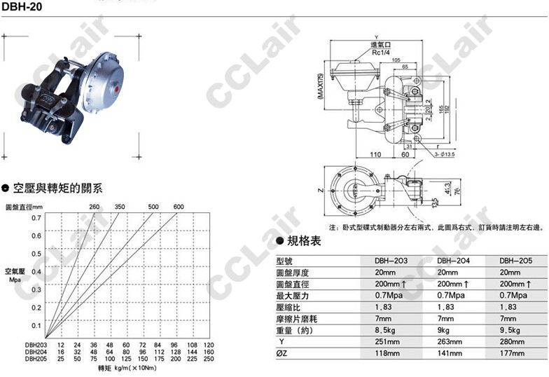 詳細(xì)信息 DBH-203,DBH-204,DBH-205,碟式制動(dòng)器,CCLair