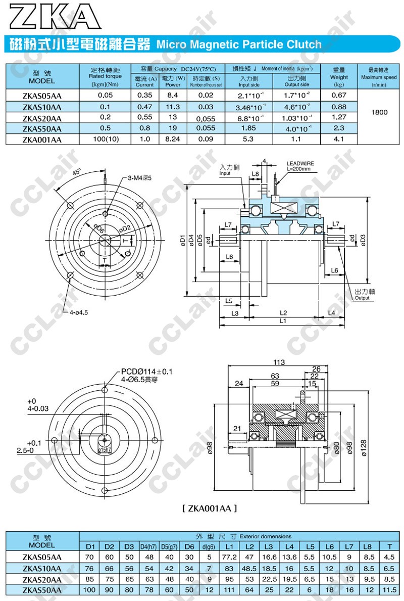 詳細(xì)信息 ZKAS05AA,ZKAS10AA,ZKAS20AA,ZKA001AA,電磁離合器,CCLair
