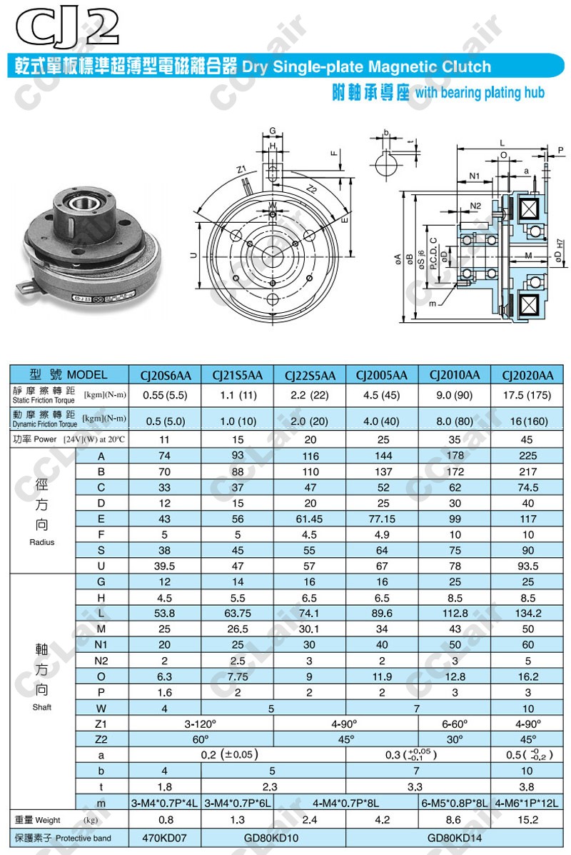 詳細信息 CJ20S6AA,CJ21S5AA,CJ22S5AA,CJ2005AA,CJ2010AA,CJ2020AA,電磁離合器,CCLair