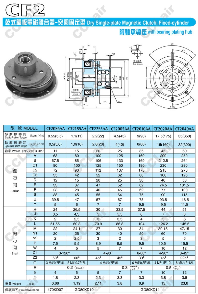 詳細信息 CF20S6AA,CF21S5AA,CF22S5AA,CF2005AA,CF2010AA,CF2020AA,CF2040AA,電磁離合器,CCLair