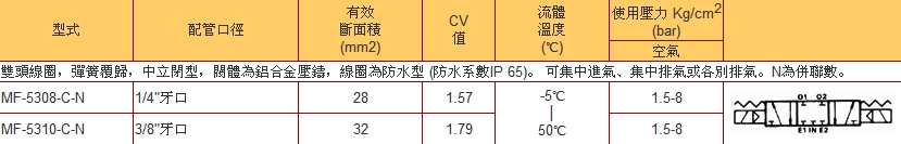 MF-5308-C-N,MF-5310-C-N,MF-5308-E-N,MF-5310-E-N,電磁閥