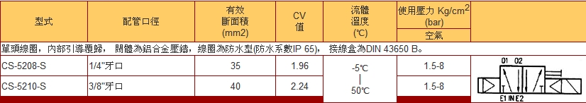 CS-5V06-S,CS-5V08-S,CS-5208-S,CS-5210-S,電磁閥