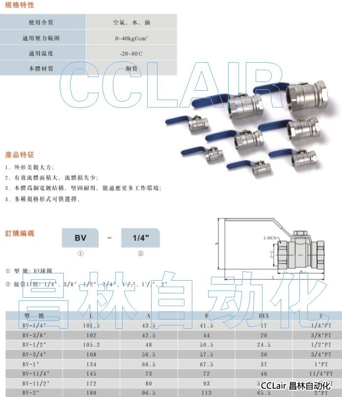 BV-1/4,BV-3/8,BV-1/2,BV-3/4,BV-1,BV-11/4,BV-11/2,BV-2,BV球閥