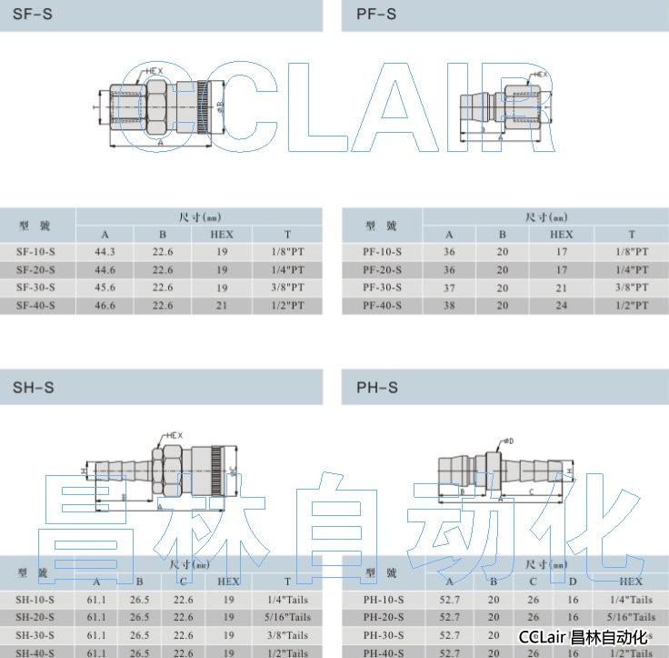 SF-10,SF-20,SF-30,SF-40,PF-10,PF-20,PF-30,SH-10,SH-40,PH-20,PH-30,雙手操作快換接頭