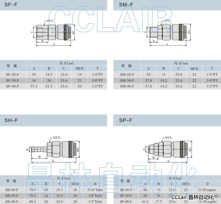 SF-20,SF-30,SF-40,SM-20,SM-30,SM-40,SH-20,SH-30,SH-40,SP-20,SP-30,SP-40,單手操作快換接頭