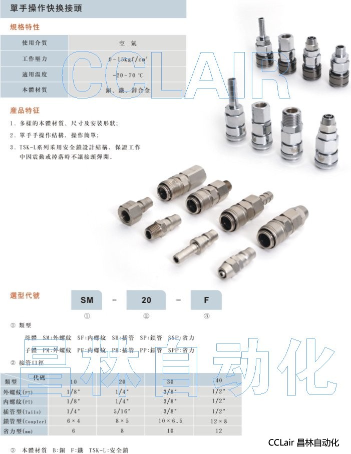 SF-20,SF-30,SF-40,PF-20,PF-30,PF-40,SH-20,SH-30,SH-40,PH-10,PH-20,PH-30,單手操作快換接頭