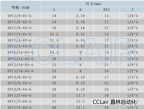 詳細(xì)信息 SPC1/8-01,SPC1/8-02,SPC1/4-01,SPC1/4-03,SPC5/16-01,SPC3/8-02,SPC1/2-02,接頭