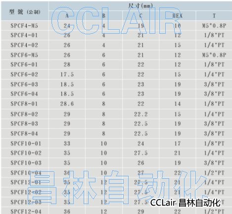 詳細(xì)信息 SPCF4-M5,SPCF4-01,SPCF4-02,SPCF6-01,SPCF6-02,SPCF8-03,SPCF10-04,SPCF12-01,接頭