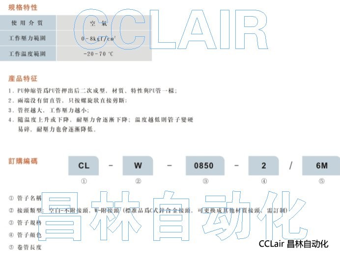 瀏覽次數(shù):1025CL-W-0850-2/6M,PU-0425-3M,PU-0640-3M,PU-0850-3M,PU-0855-3M,PU伸縮管 |