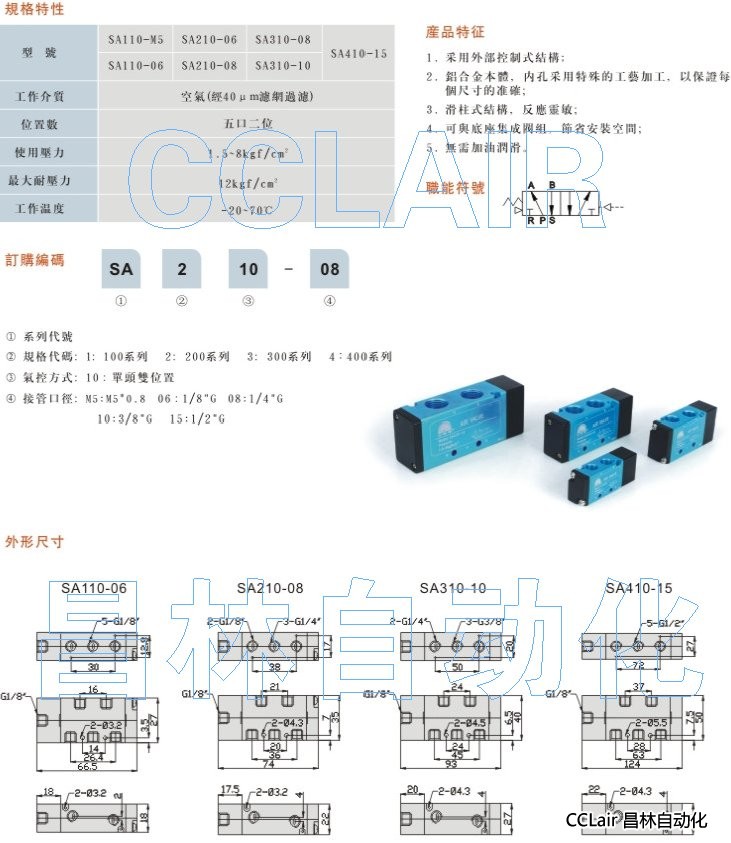 詳細(xì)信息 SA110-M5,SA110-06,SA110-08,SA110-10,SA210-M5,SA210-06,SA210-08,單頭雙位氣動(dòng)閥