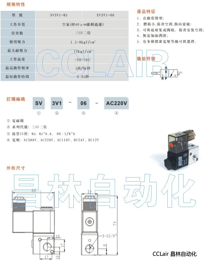 SV3V1-M5-AC380V,SV3V1-06-AC380V,SV3V1-M5-AC220V,SV3V1-06-AC220V,電磁閥