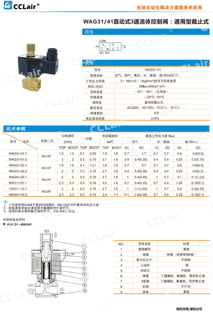 詳細(xì)信息 WAG31-01-1,WAG31-01-2,WAG31-02-1,WAG31-02-2,WAG41-02-1,WAG41-02-2,WAG41-03-1,WAG41-03-2,流體控制閥