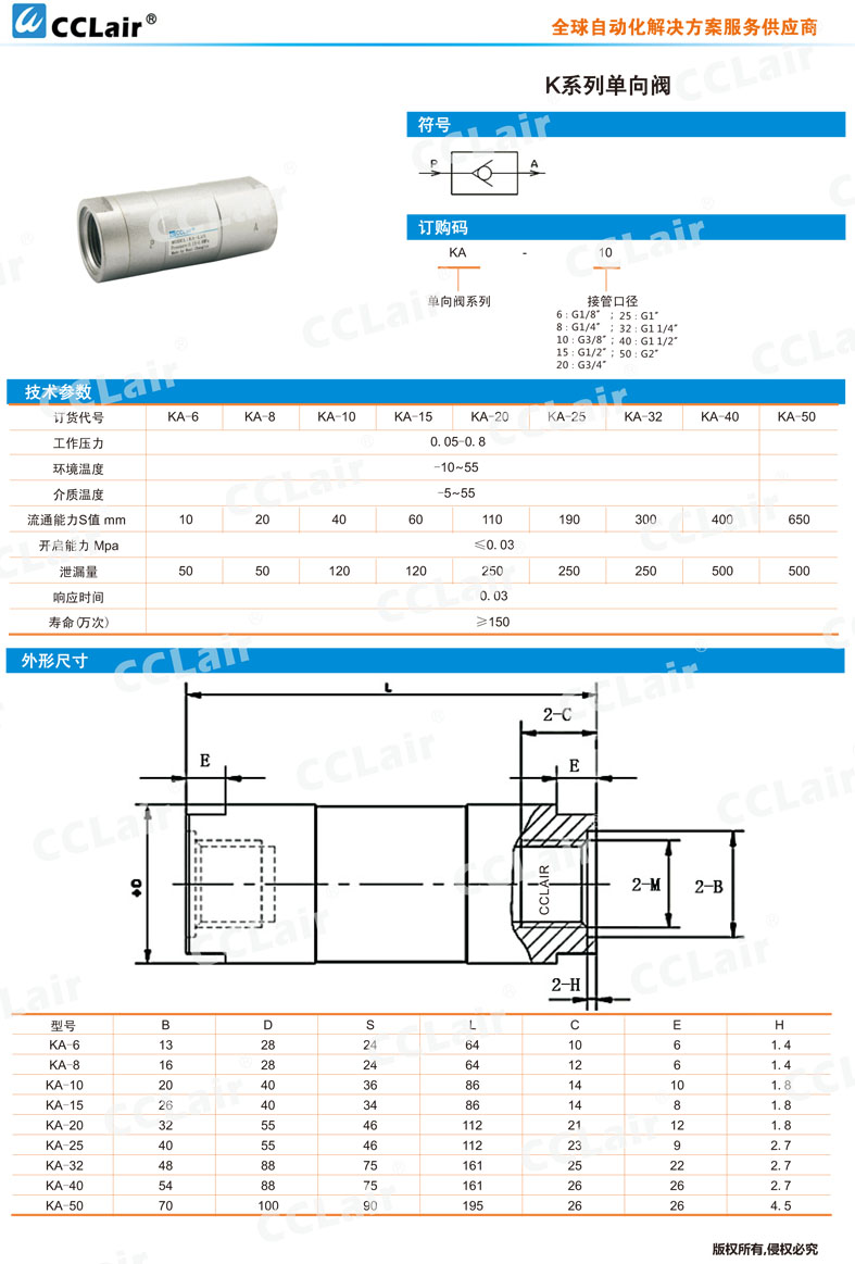 KA-6,KA-8,KA-10,KA-15,KA-20,KA-25,KA-32,KA-40,KA-50,單向閥