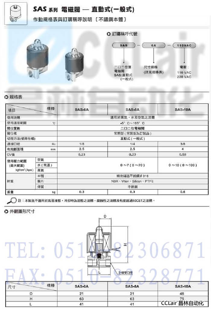SAS-6A,SAS-8A,SAS-10A,直動(dòng)式電磁閥
