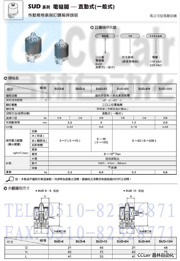 SUD-6,SUD-8,SUD-10,SUD-6H,SUD-8H,SUD-10H,直動(dòng)式電磁閥