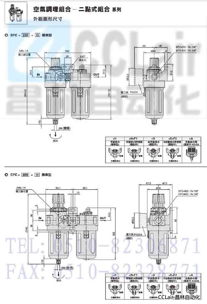 AFC-150,AFC-200,BFC-200,BFC-300,CFC-400,CFC-600,二點(diǎn)式組合