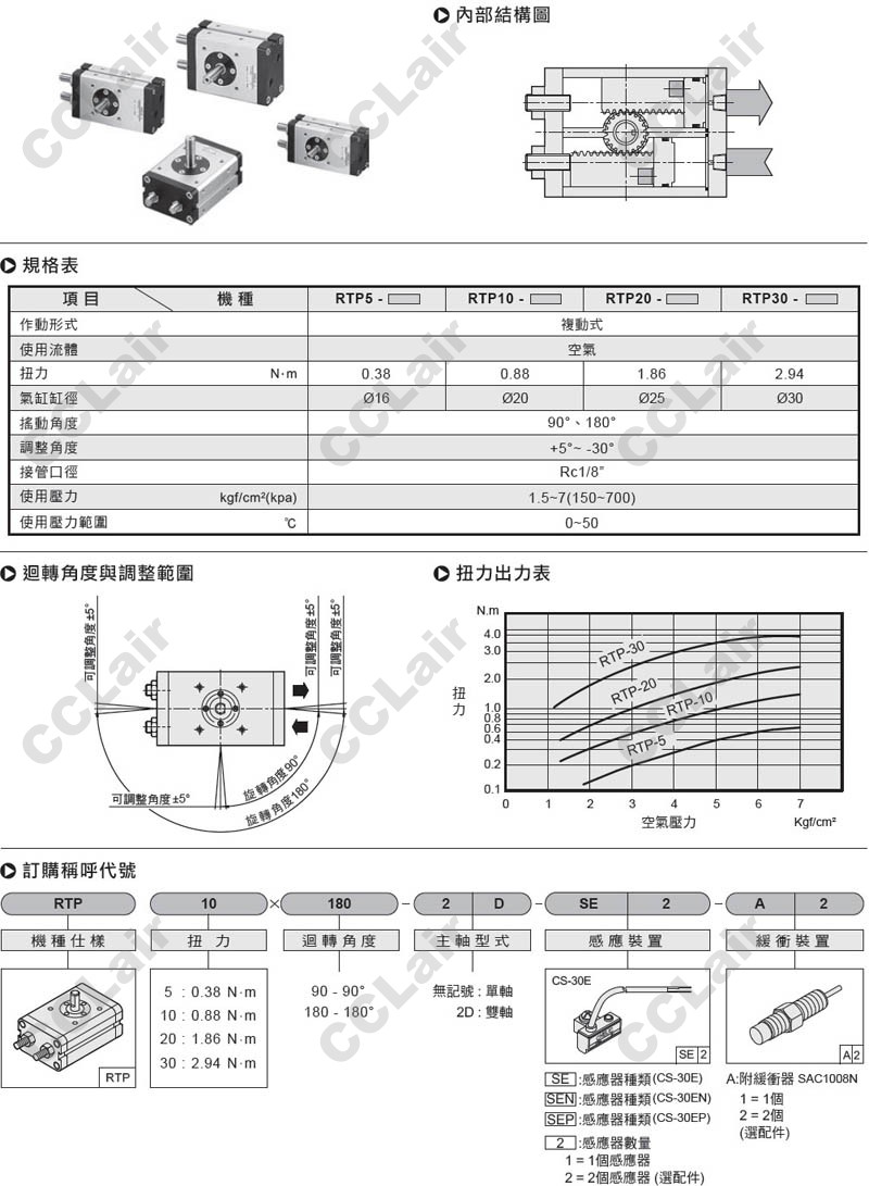 氣立可(chelic),RTP5*90,RTP5*180,RTP10*90,RTP10*180,RTP20*90,RTP20*180,RTP30*90,RTP30*180,回轉(zhuǎn)氣缸