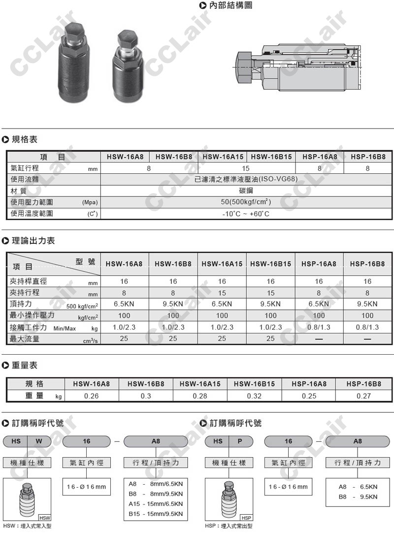 氣立可(chelic),HSW16-A8,HSW16-B8,HSW16-A15,HSW16-B15,HSP16-A8,HSP16-B8,螺栓式單動頂持缸