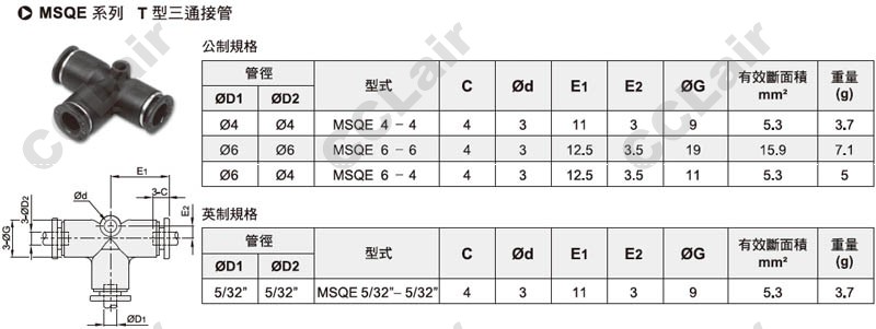 氣立可(chelic),MSQE4-4,MSQE6-6,MSQE6-4,MSQE5/32-5/32,T型三通接管